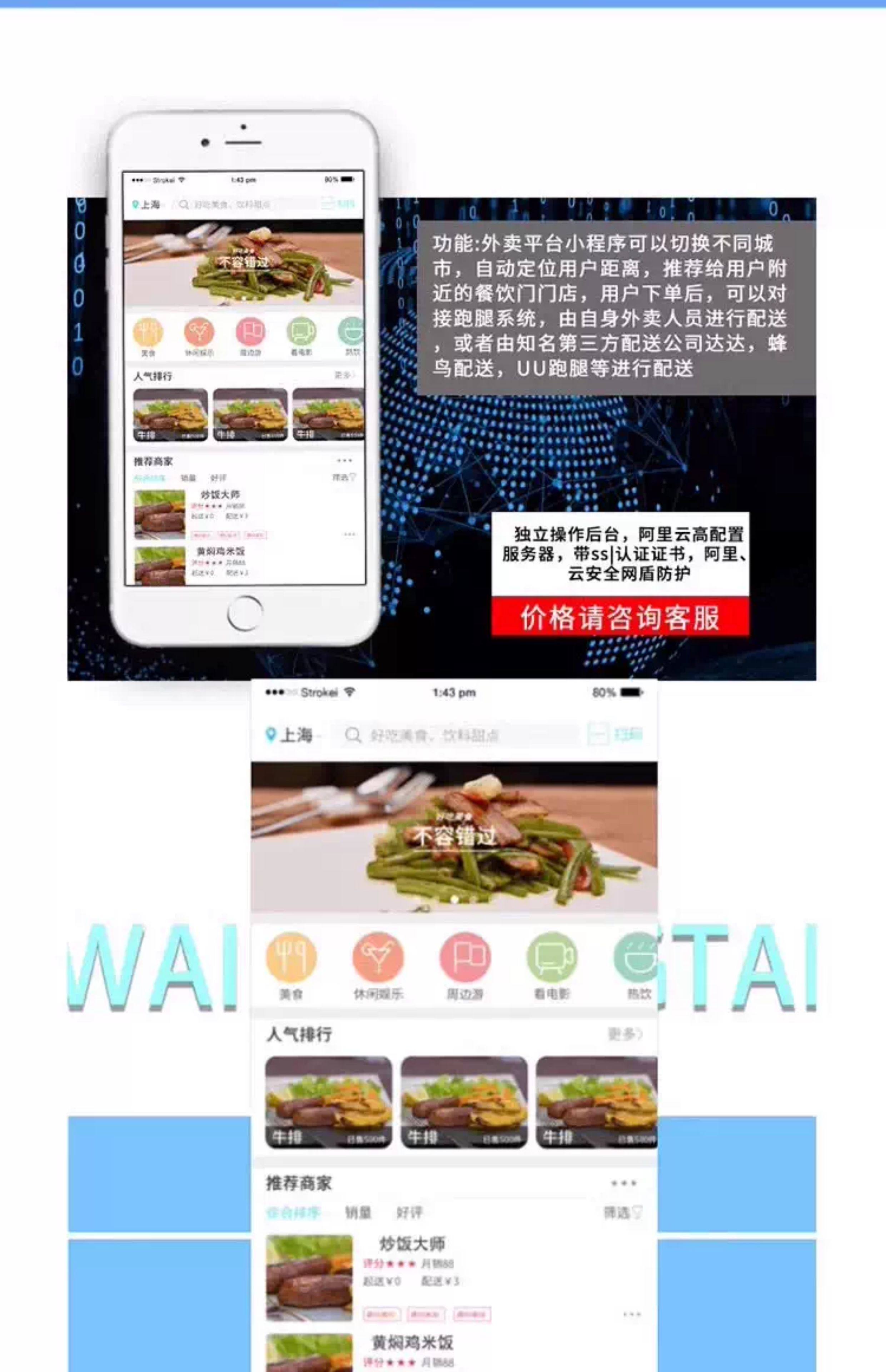 我公司代理微信小程序开发,餐饮软件,外卖软件等各类软件开发。如有需要请联系本公司,